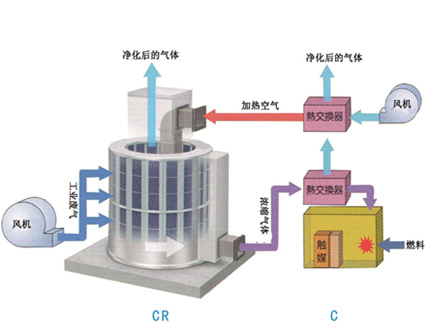 把有機廢氣加熱到760℃以上,將有機廢氣氧化生成CO2和H2O,從而凈化廢氣,并回收分解時所釋出的熱量,以達(dá)到環(huán)保節(jié)能的雙重目的,是一種用于處理中高濃度揮發(fā)性有機廢氣的節(jié)能型環(huán)保裝置。